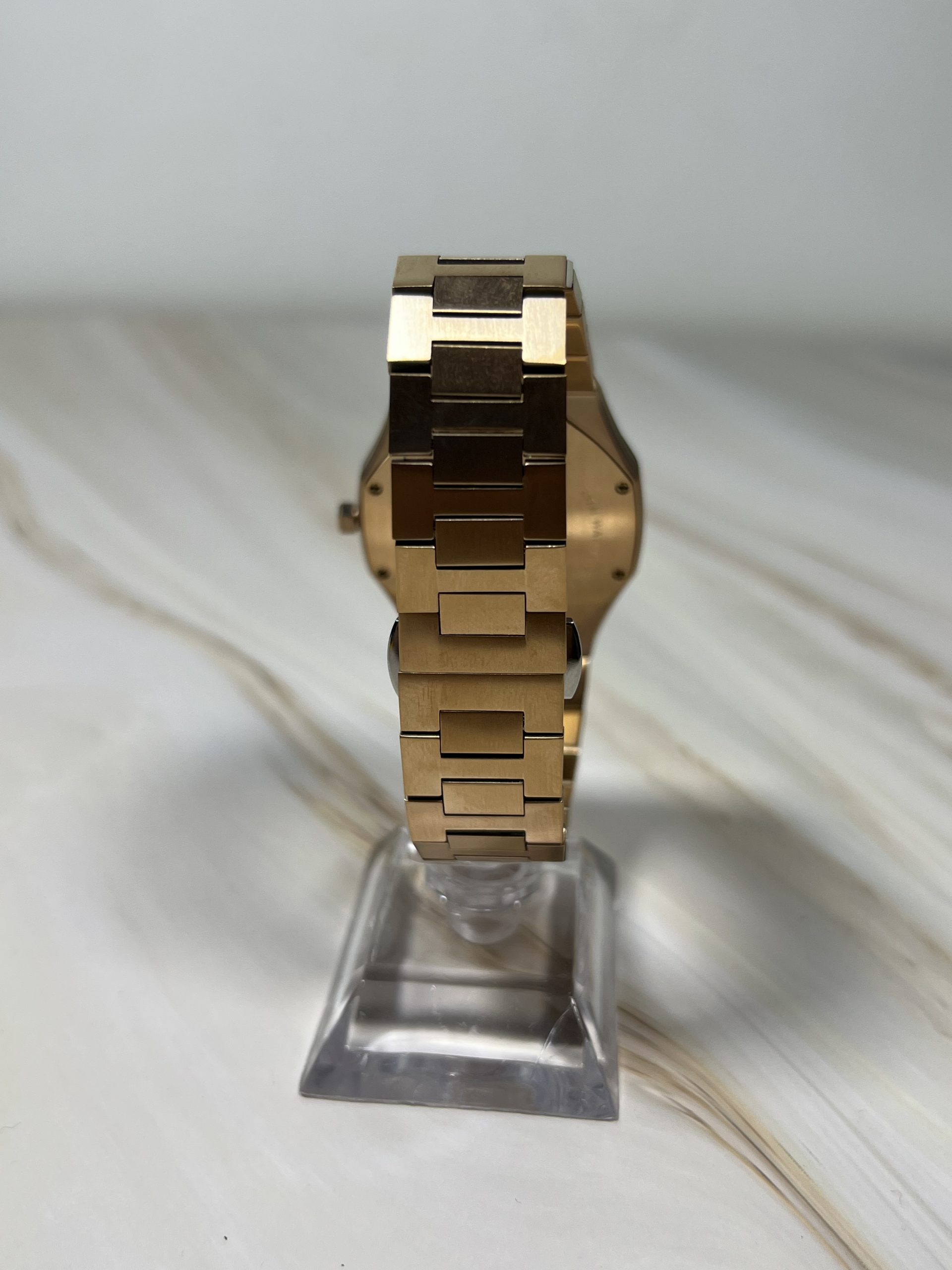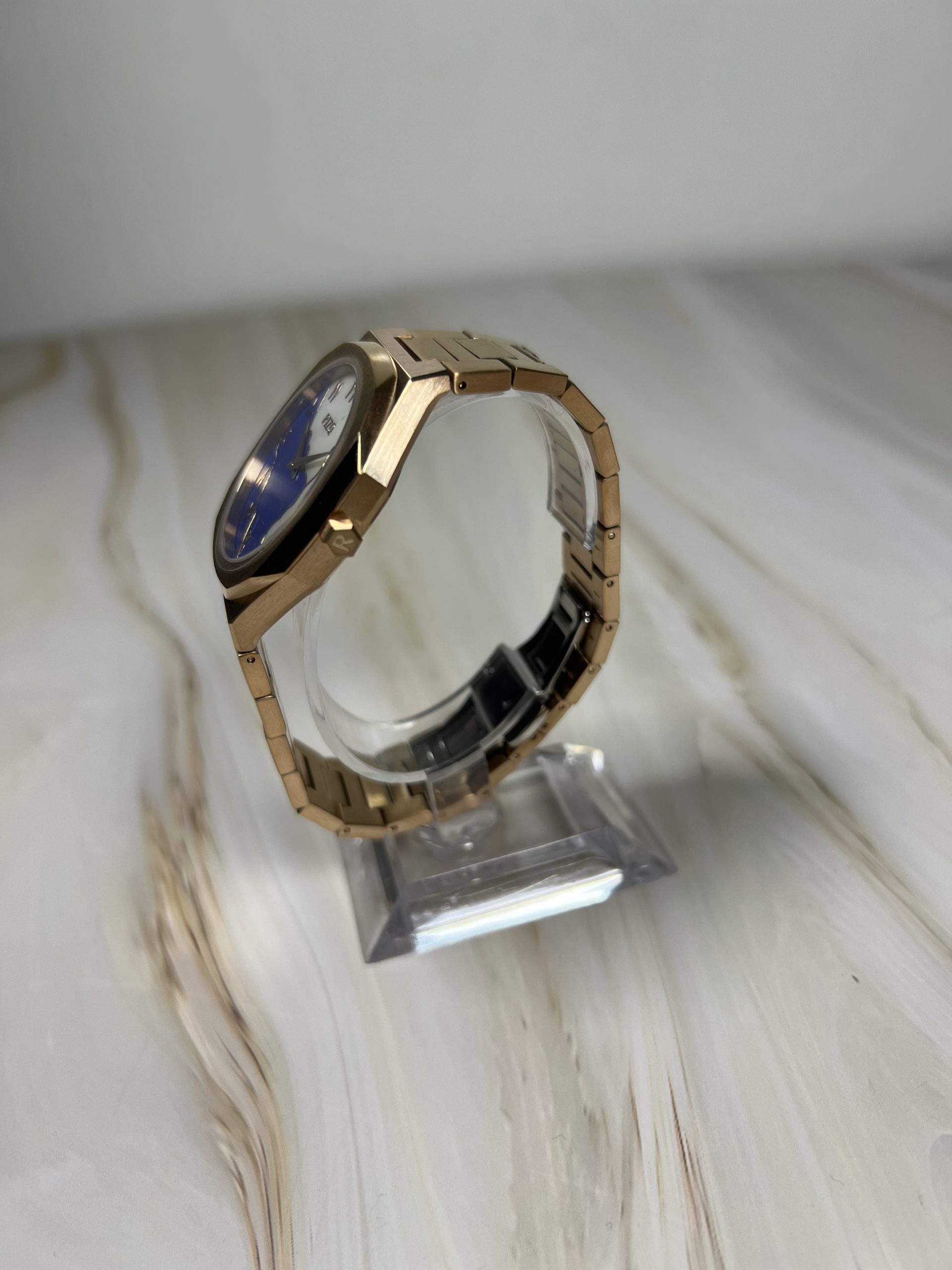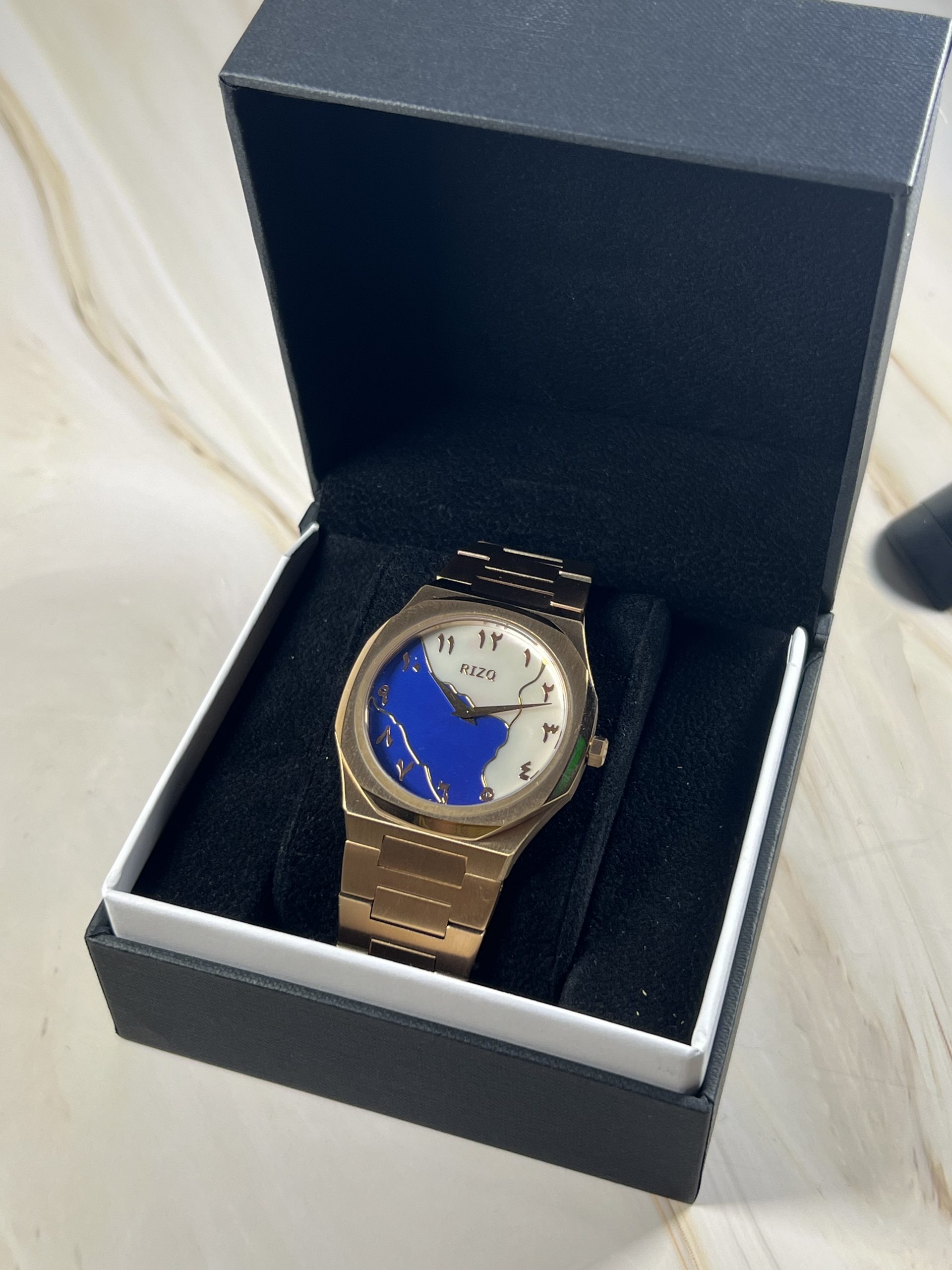 The Rizq™ Warda, our boldest timepiece representing serenity and divine elegance. Crafted with a sleek, rose gold stainless steel case with a striking marbled face, evoking the tranquil beauty of the heavens.